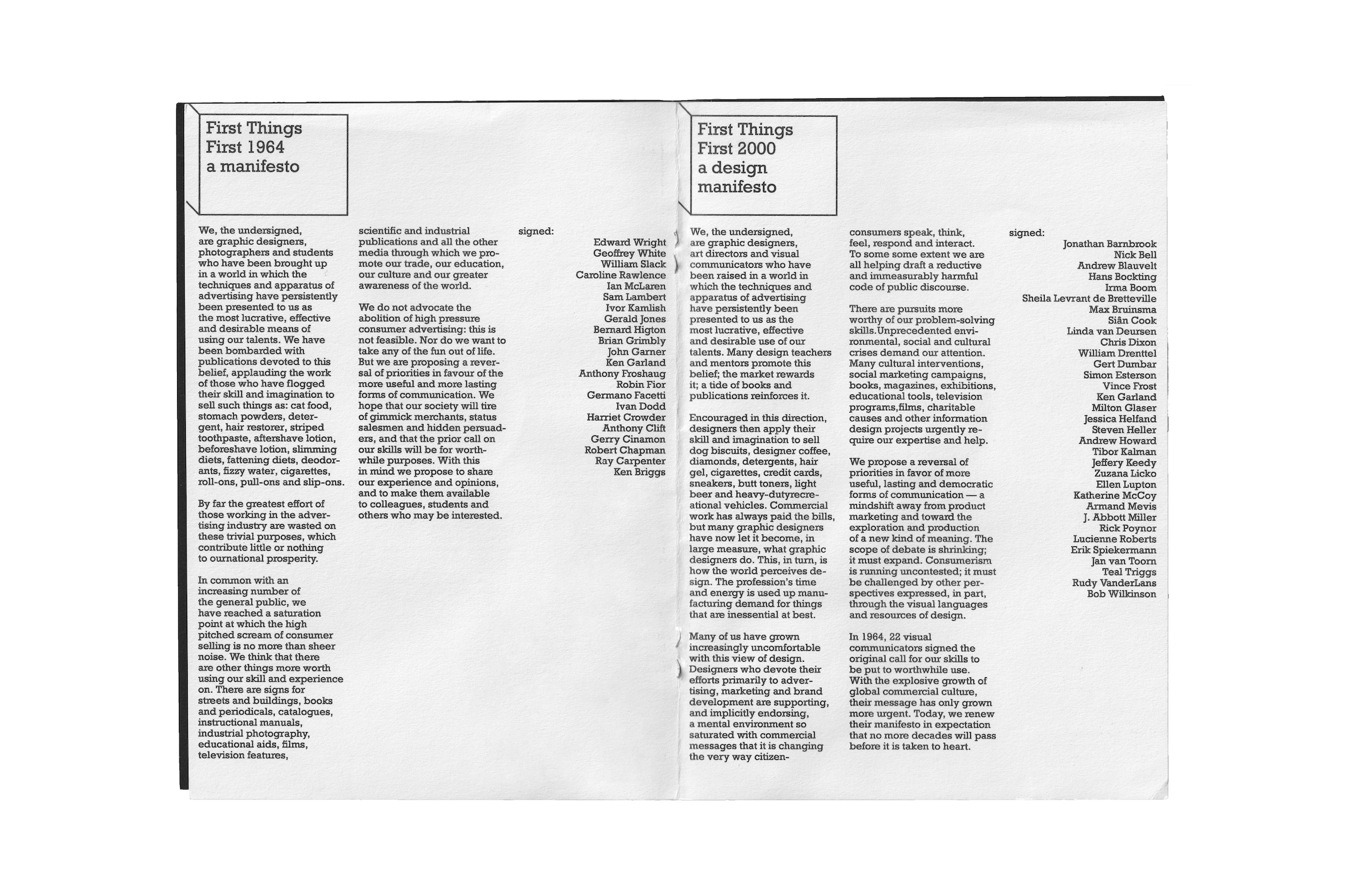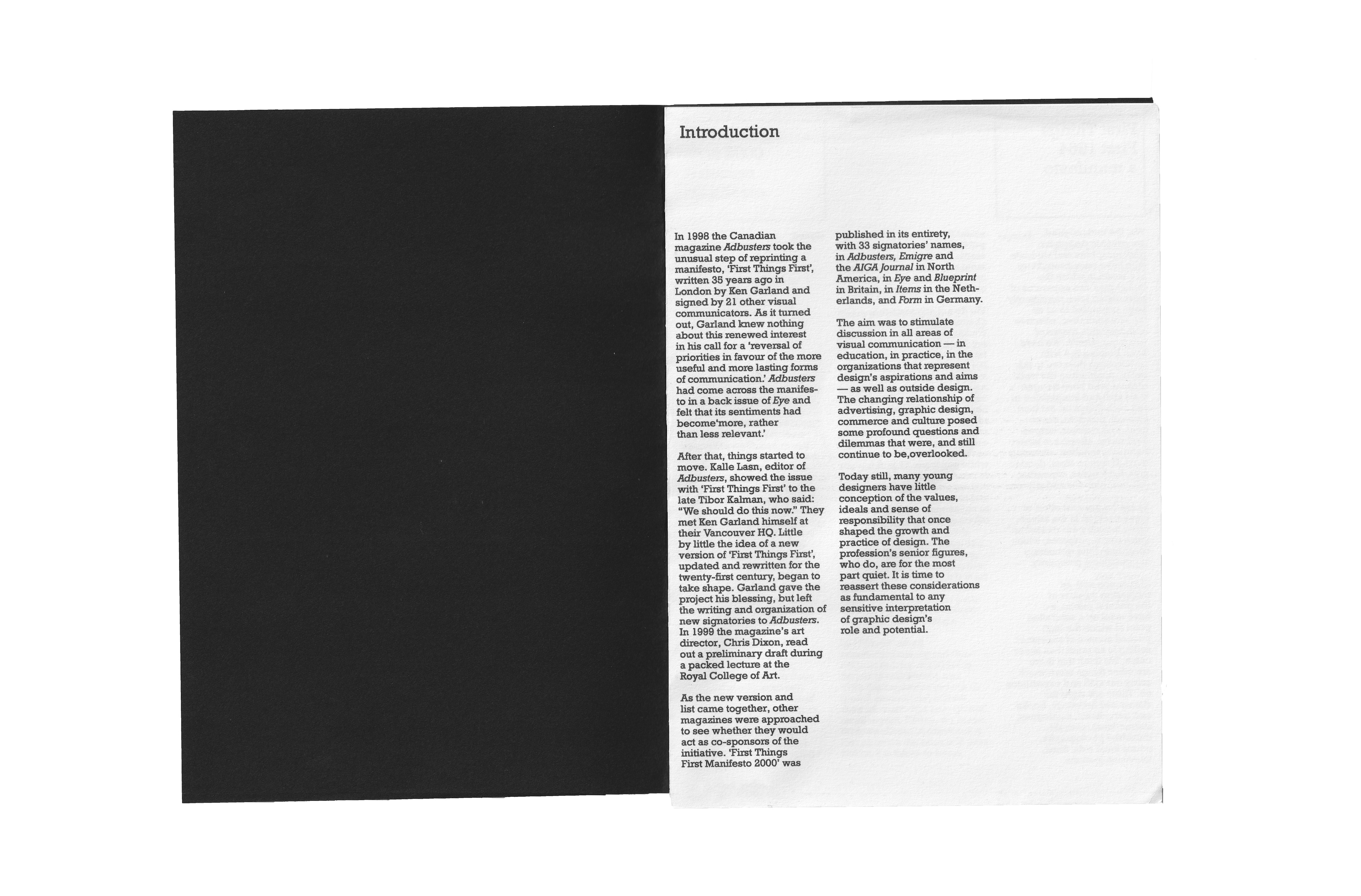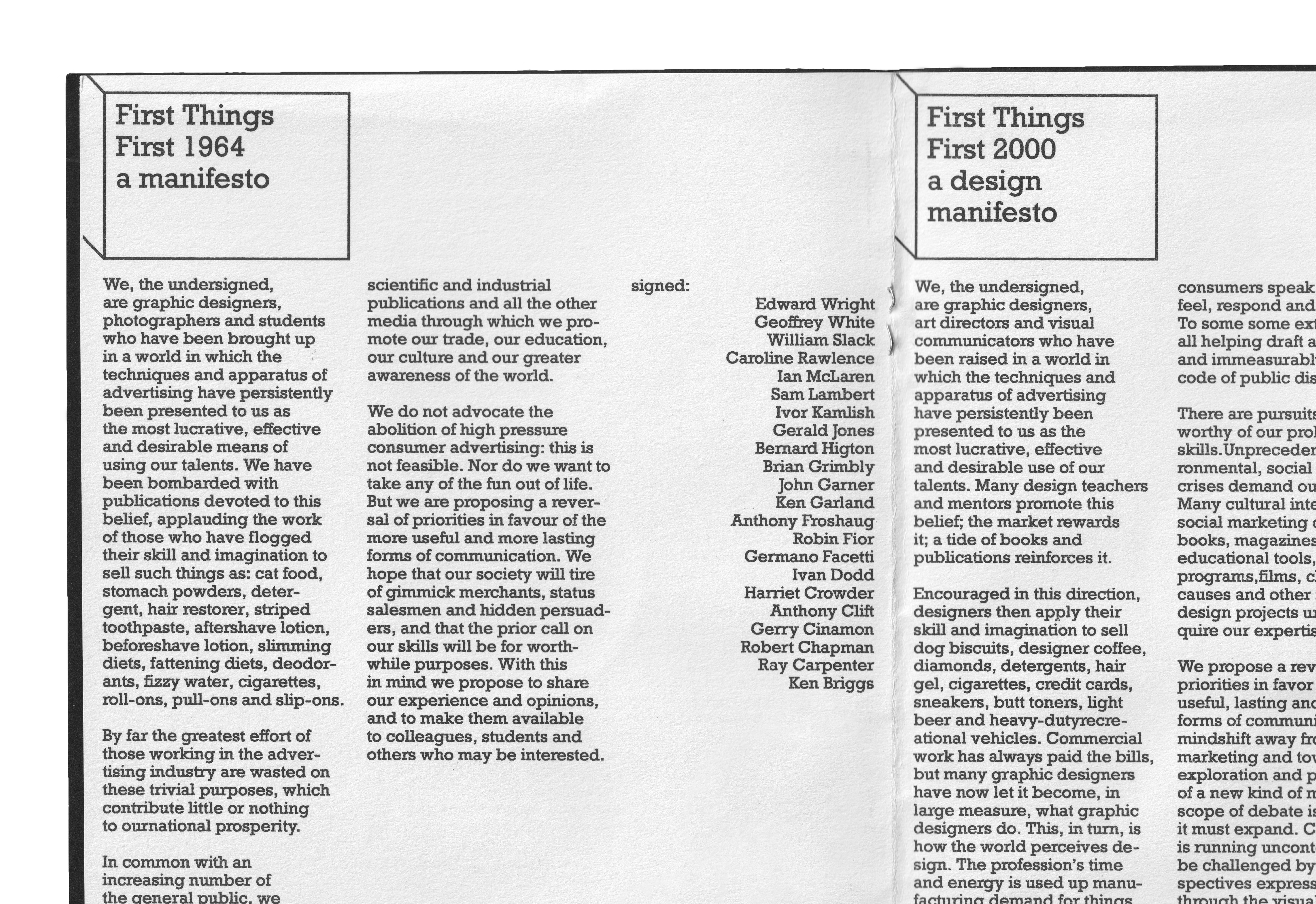 Redesign of the First Things First 1964 manifesto into a riso printed zine.
